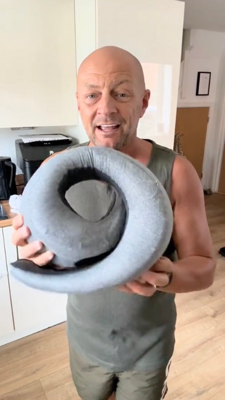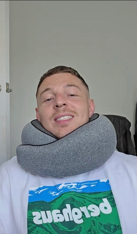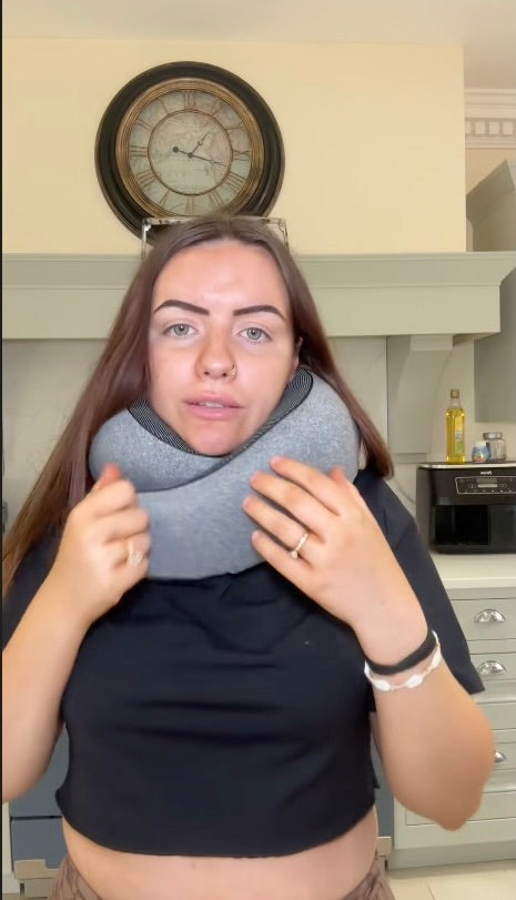 Tripzz™ is designed with high-density adaptive memory foam that moulds to your neck and holds its shape. Unlike hollow or inflatable pillows, it provides structured 360° support to help prevent forward head drop and neck strain during travel.